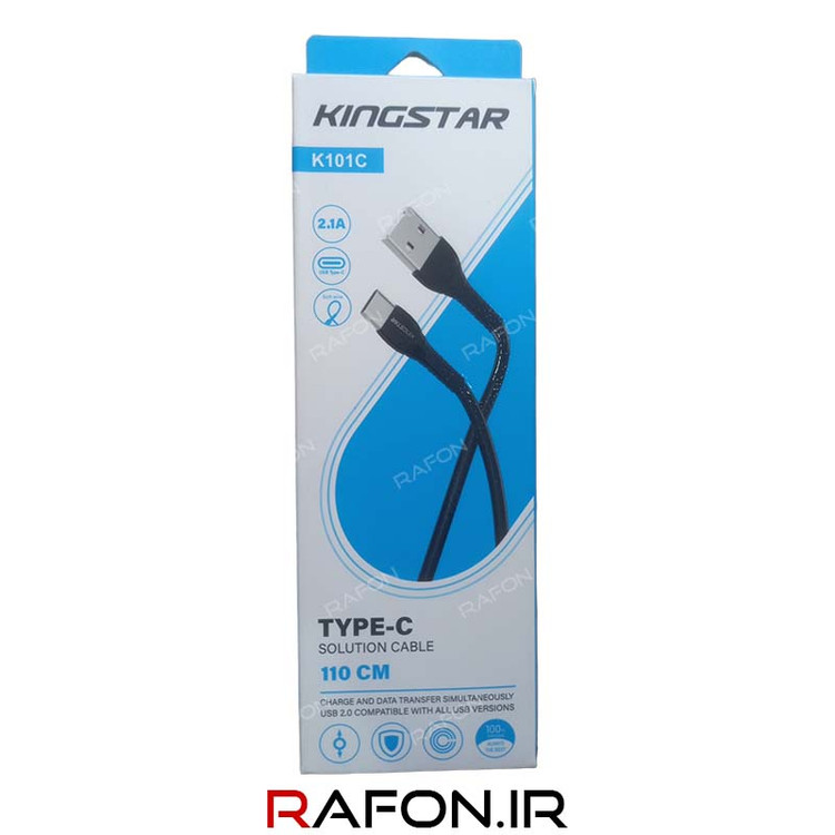 شما با استفاده از کابل TYPE - C کینگ استار مدل K101C میتوانید علاوه بر شارژ تلفن همراه خود، اطلاعاتتان را نیز منتقل کنید. در یک سمت این کابل ساخت ایران یک کانکتور TYPE - C و در سمت دیگر آن یک کانکتور USB وجود دارد. سمت TYPE - C آن مناسب برای تمامی دستگاههای مجهز به این نوع درگاه است.